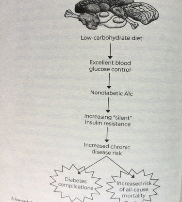 Figure shows low carbohydrate and high Trans or saturated fatty acids -diets in a long term cause insulin resistance, then increases the risk of diabetes, and mortality.